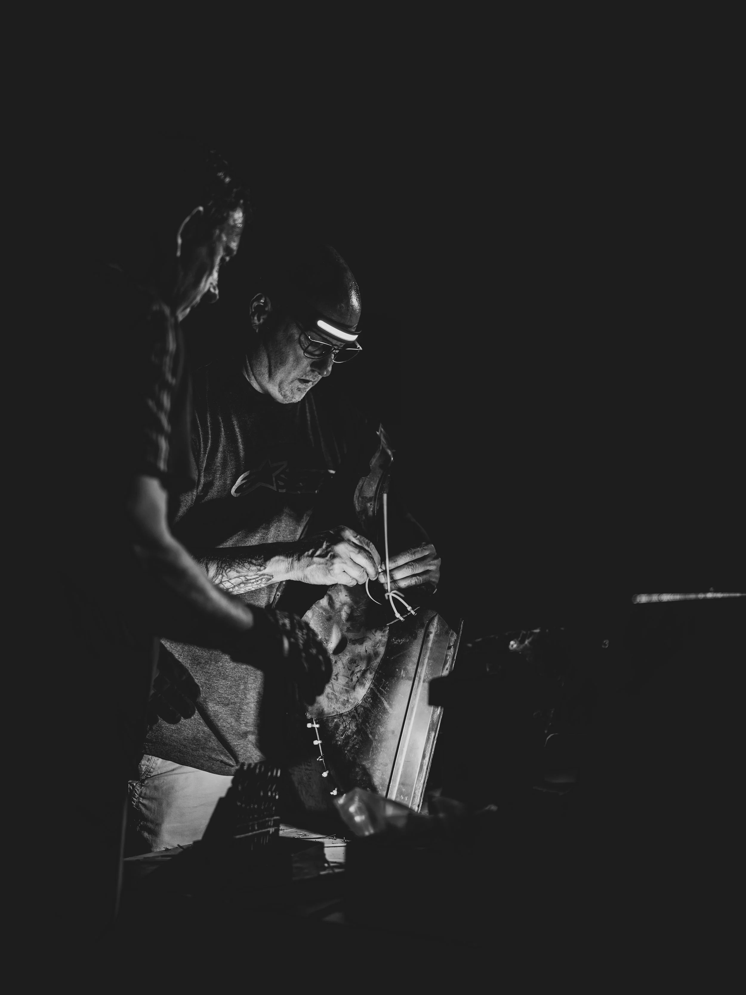 I joked that the helmet fan needed a face, one step from being anthropomorphized. He smiled, grabbed a Sharpie, and drew one. A fleeting laugh broke the moment, but I caught a glimpse of discomfort—like I had nudged something sacred in his process.