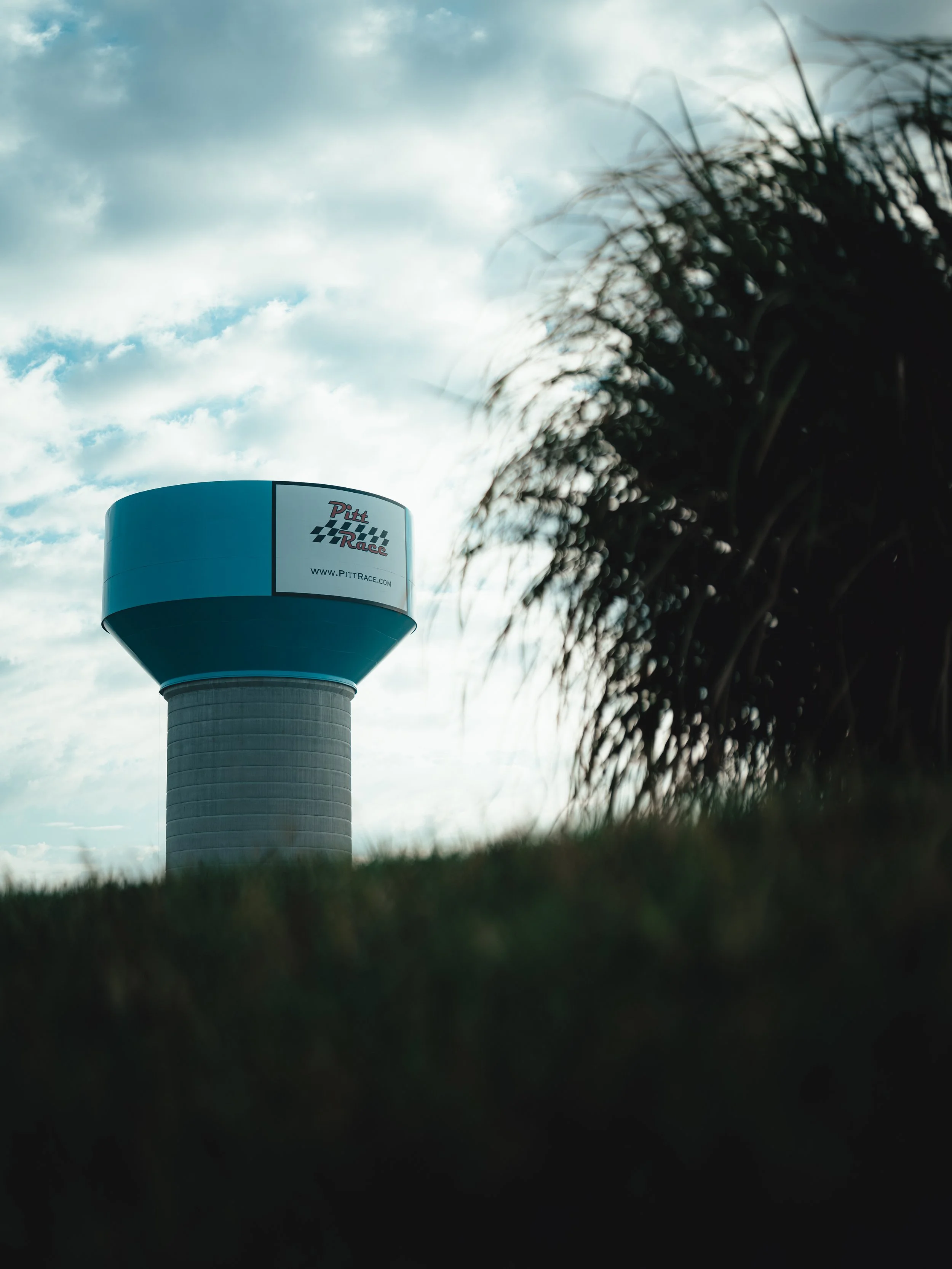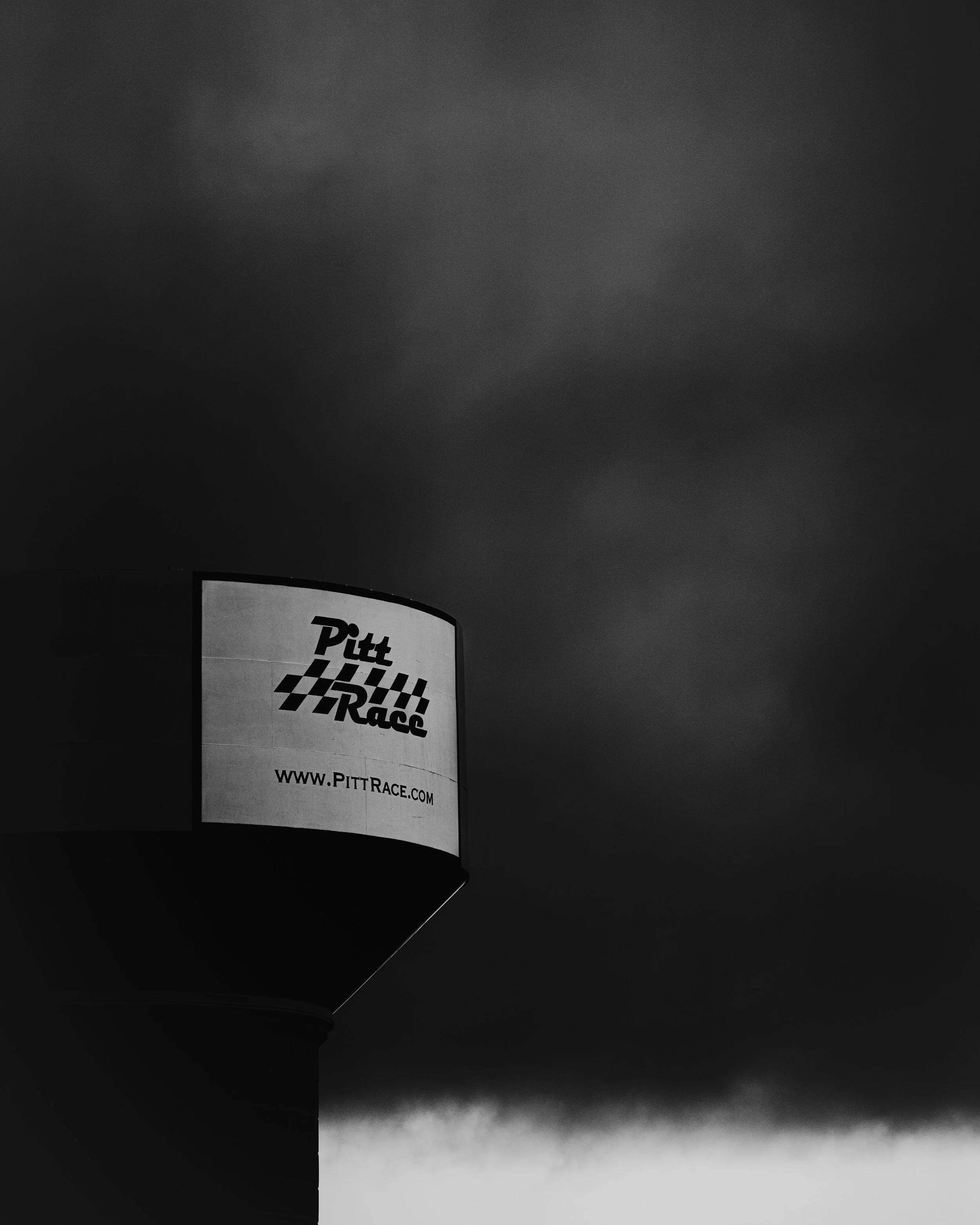 Sunday opened wrapped in mist and light rain. Long delays. We leaned into stillness instead—shooting the landscape, the water tower fading in and out, the track breathing between sessions. A few went out anyway. PittRace in the wet has never offered forgiveness.