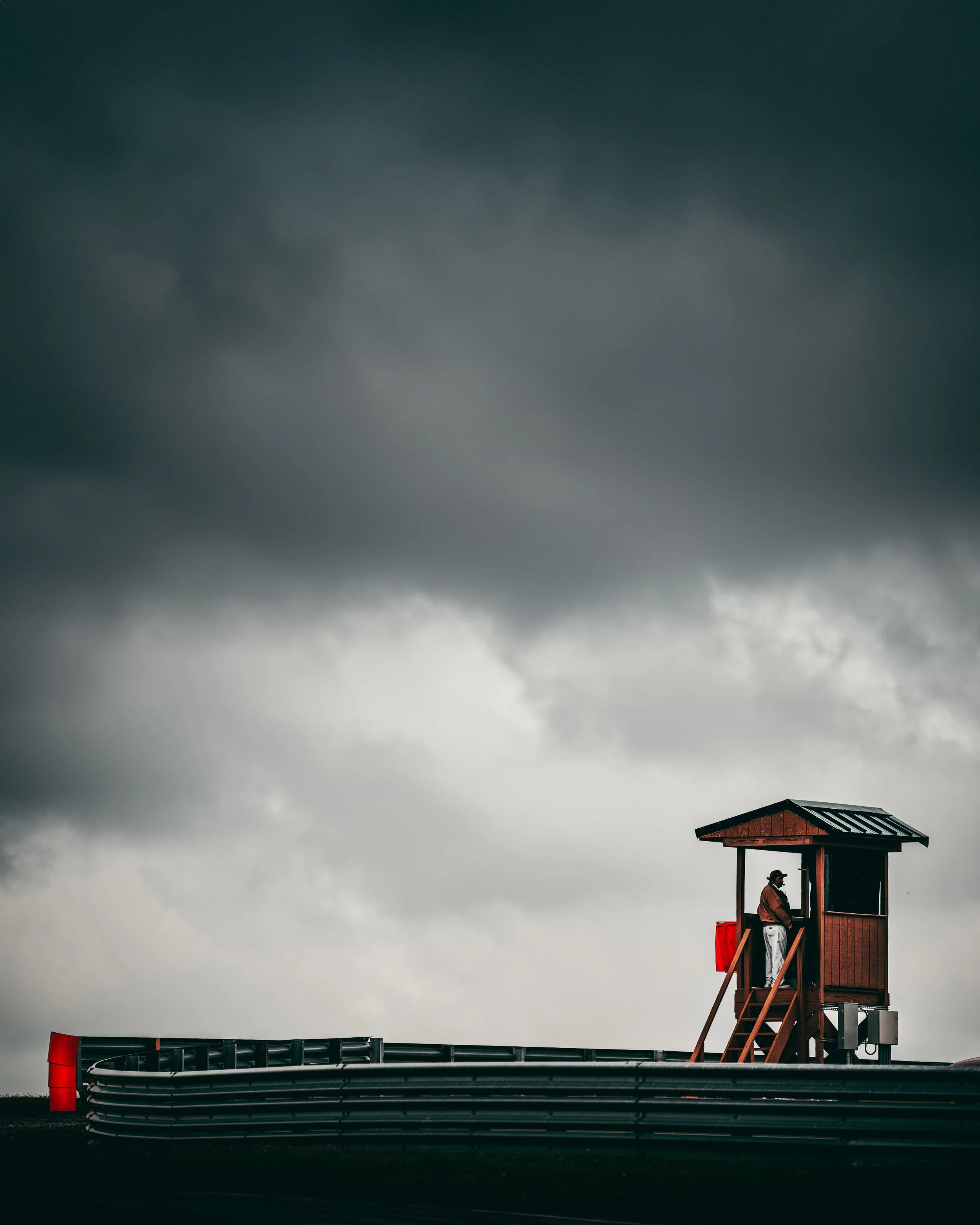 The plan wasn’t hero shots. It was documentation with teeth. Preservation before subtraction. The place wasn’t decaying. The timing tower still cut a clean silhouette. The paddock felt intact. Functional. Confident. Nothing about it looked finished. Which made the finality feel sharper.